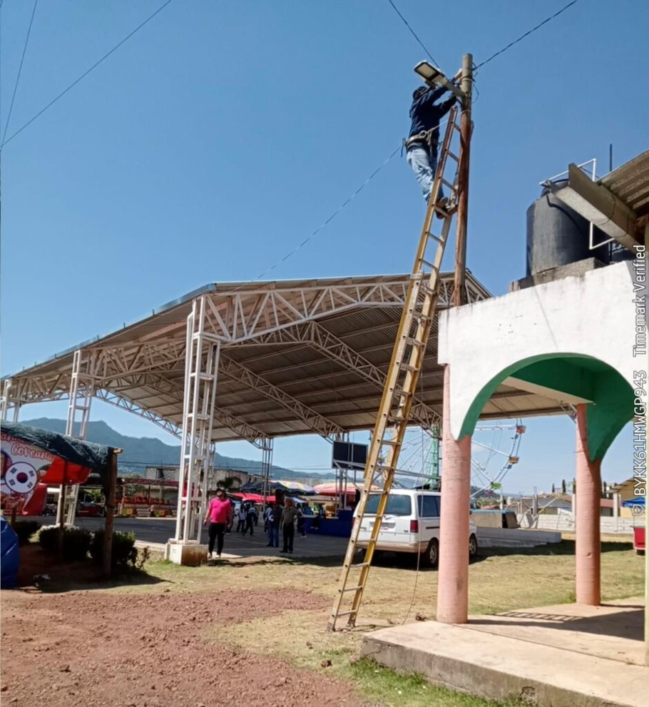 Mientras que en San Joaquín Tomatlán se repararon 10 luminarias, se colocó una nueva de la marca Veimont, así como se reparó toda la línea de la cancha de basquetbol, dejando en funcionamiento 11 lámparas.