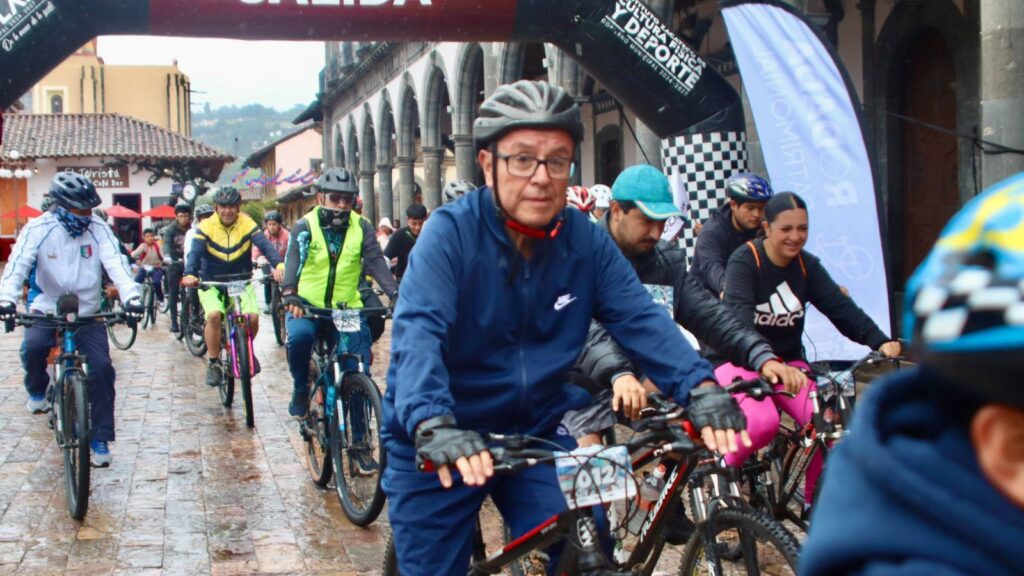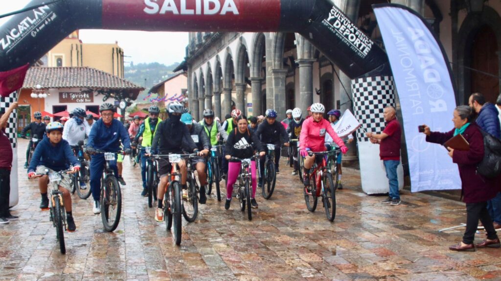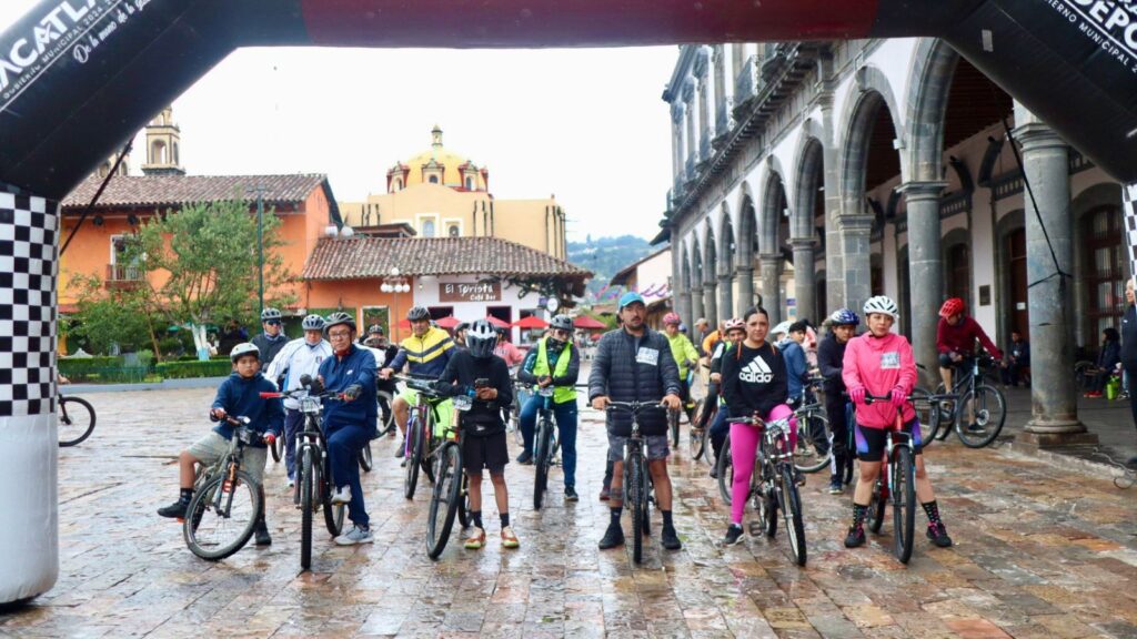 La lluvia fue el marco perfecto para que ciclistas conocieran los lugares históricos de Zacatlán, gracias a la Rodada Patrimonial organizada por la Secretaría de Cultura del Estado y el Ayuntamiento.