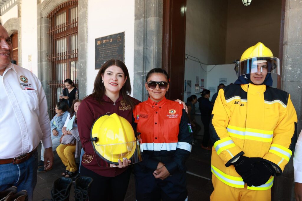 También en esta jornada, Bety Sánchez entregó uniformes al personal de Protección Civil y Bomberos, así como equipos de cómputo al DIF, Atención Ciudadana y el SARE de Normatividad.