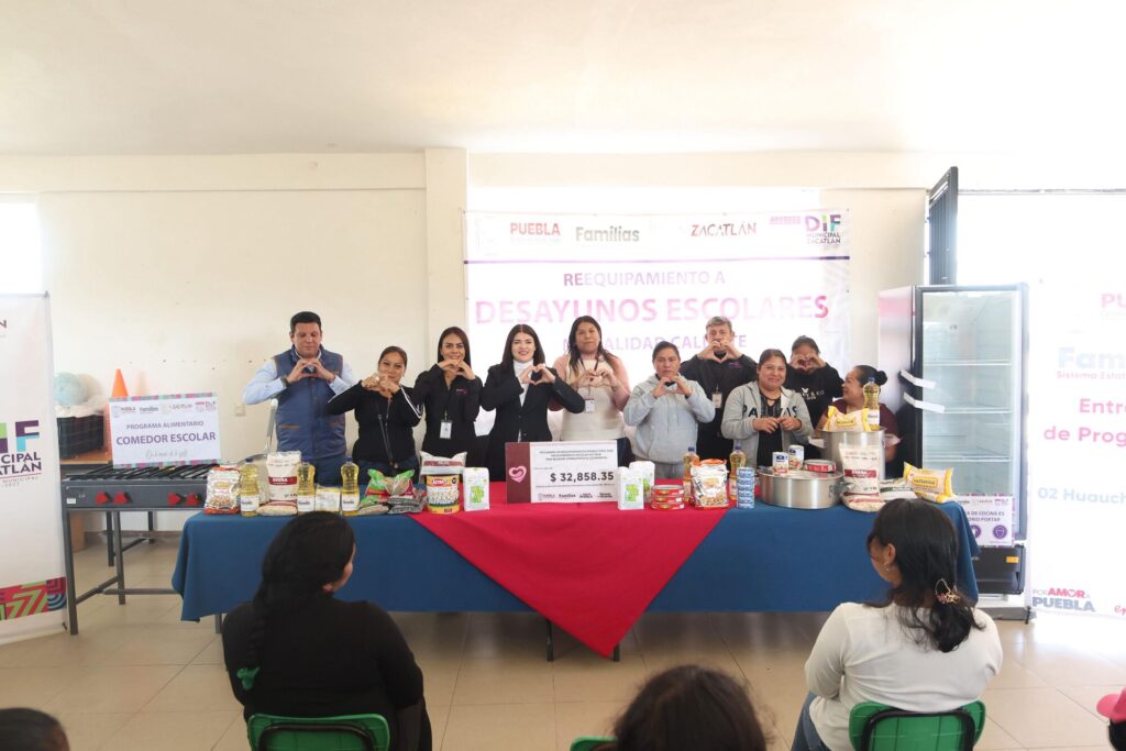 El Gobierno Municipal, encabezado por la presidenta Bety Sánchez, en coordinación con la Delegación de la Microrregión 02 del Sistema Estatal DIF (SEDIF), realizó la entrega de equipamiento para comedores escolares en la modalidad de alimentos calientes en la Primaria Bilingüe Chimalpopocan, de Huauchinancingo, y en el Preescolar Niñez Mexicana, de Cuautilulco.