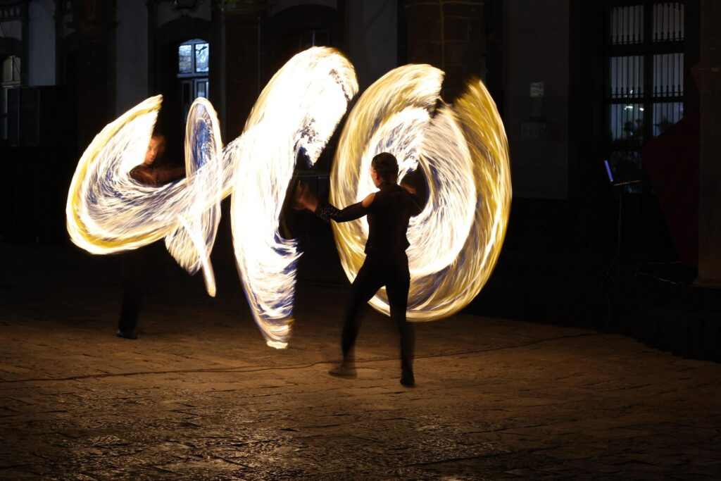 7. De pronto, entraron unos artistas de fuego, que simboliza los hornos en los que se hornea el pan, además la luz para la esperanza.