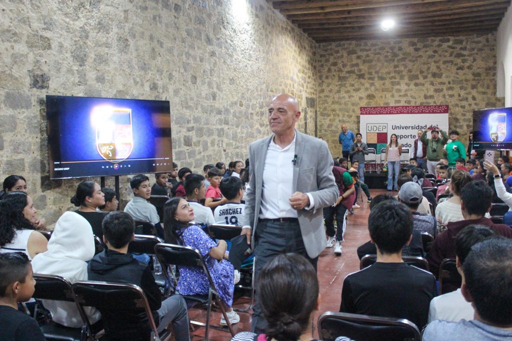 A fin de motivar a niñas, niños y adolescentes, además de invitarlos a la Universidad del Deporte, el rector de esta institución y exdirector técnico del Puebla de la Franja, José Luis Sánchez Solá alias “El Chelis”, impartió una plática motivacional a este sector de la población en Zacatlán.